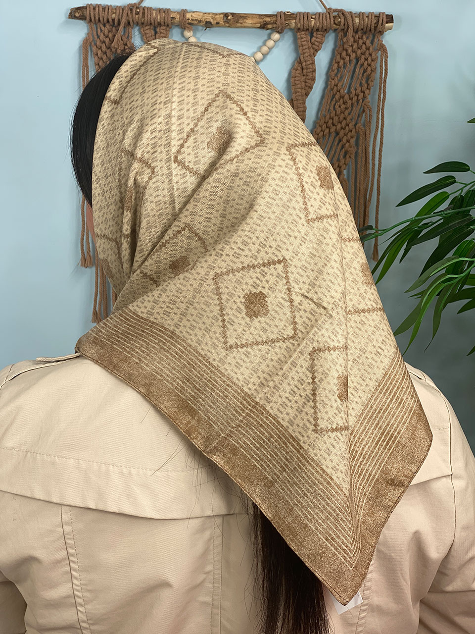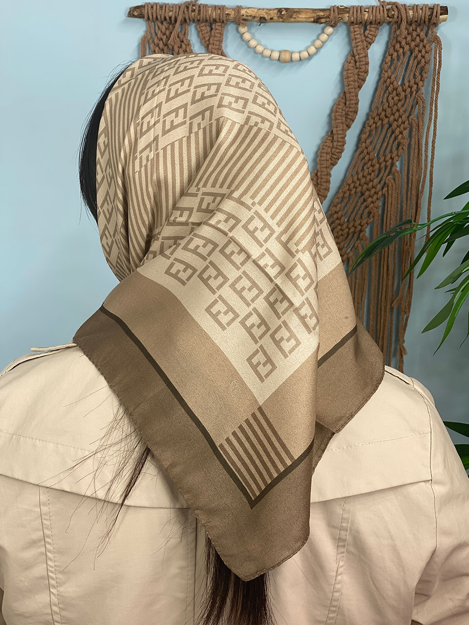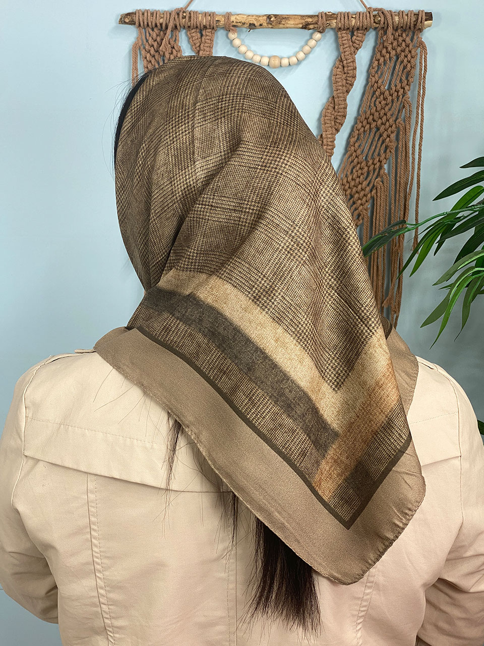 مینی اسکارف ترکیبی کرم قهوه ای (6642)
