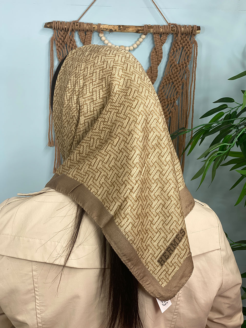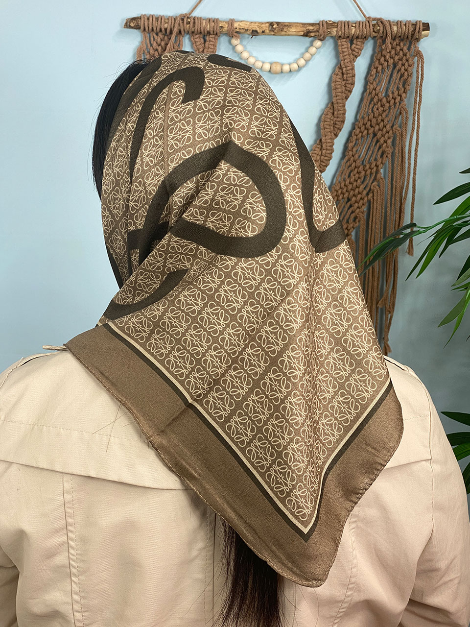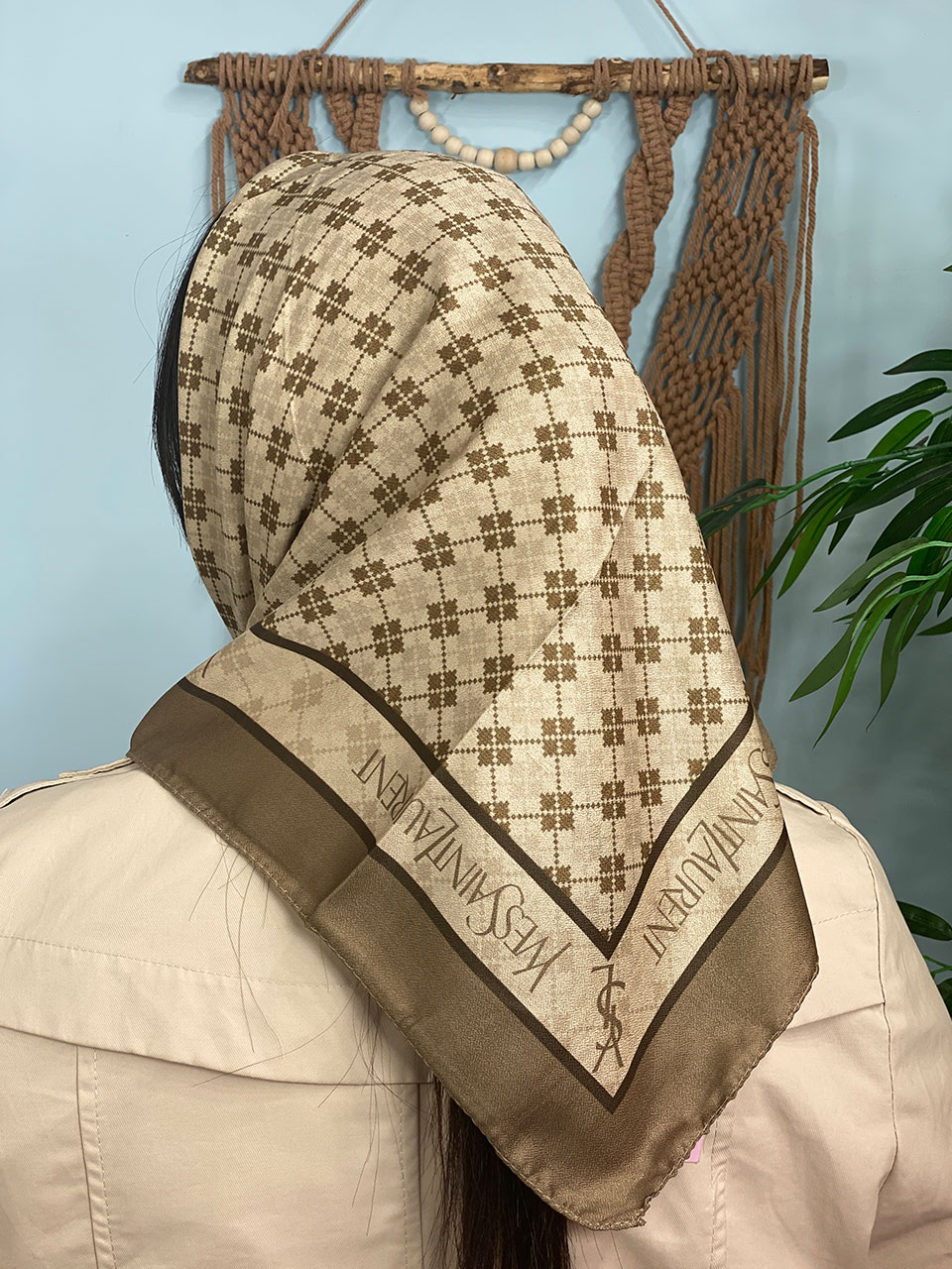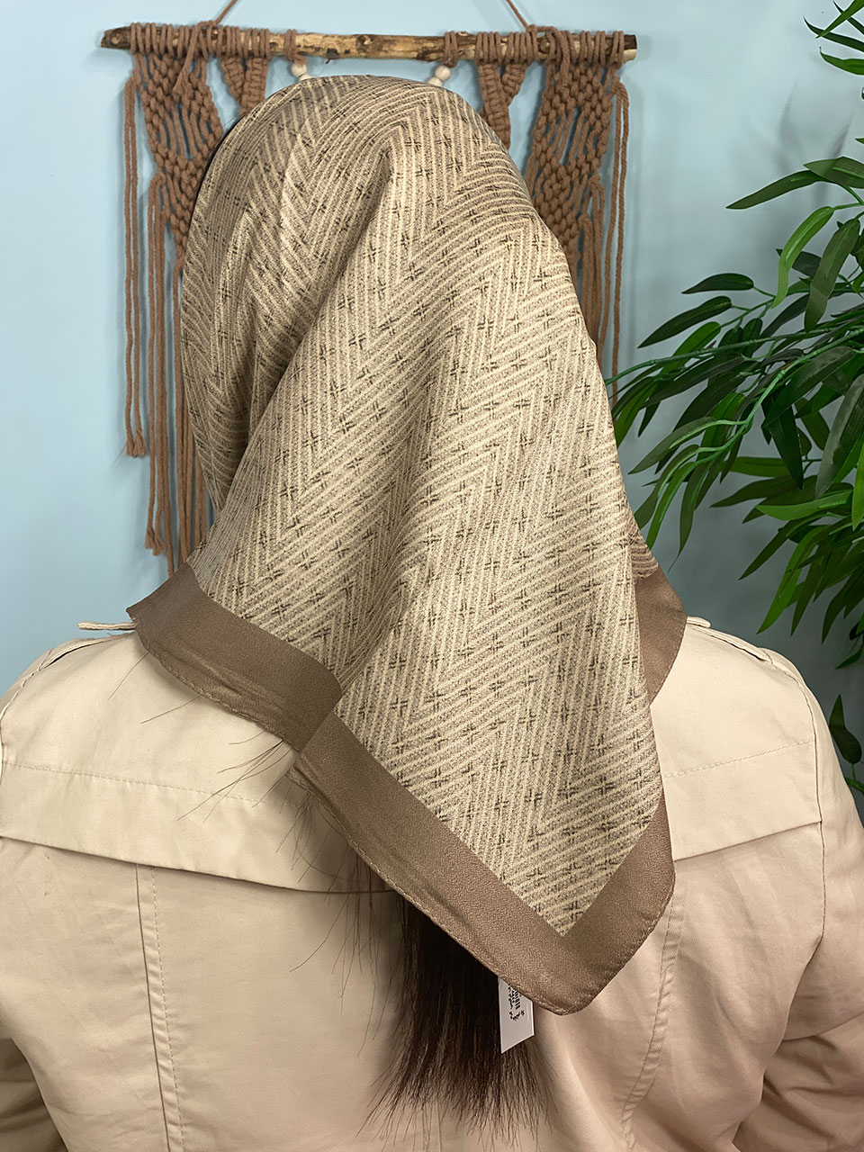 مینی اسکارف ترکیبی کرم قهوه ای (6642)